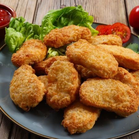 Indulge in 8pcs Chicken Nuggets, bite-sized pieces of tender chicken breast, coated in a crispy golden breading—a satisfying snack or meal option for chicken lovers of all ages!