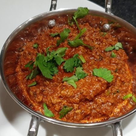Experience the fiery delight of our Keema Vindaloo, where minced meat meets a spicy blend of flavors for an unforgettable culinary journey.